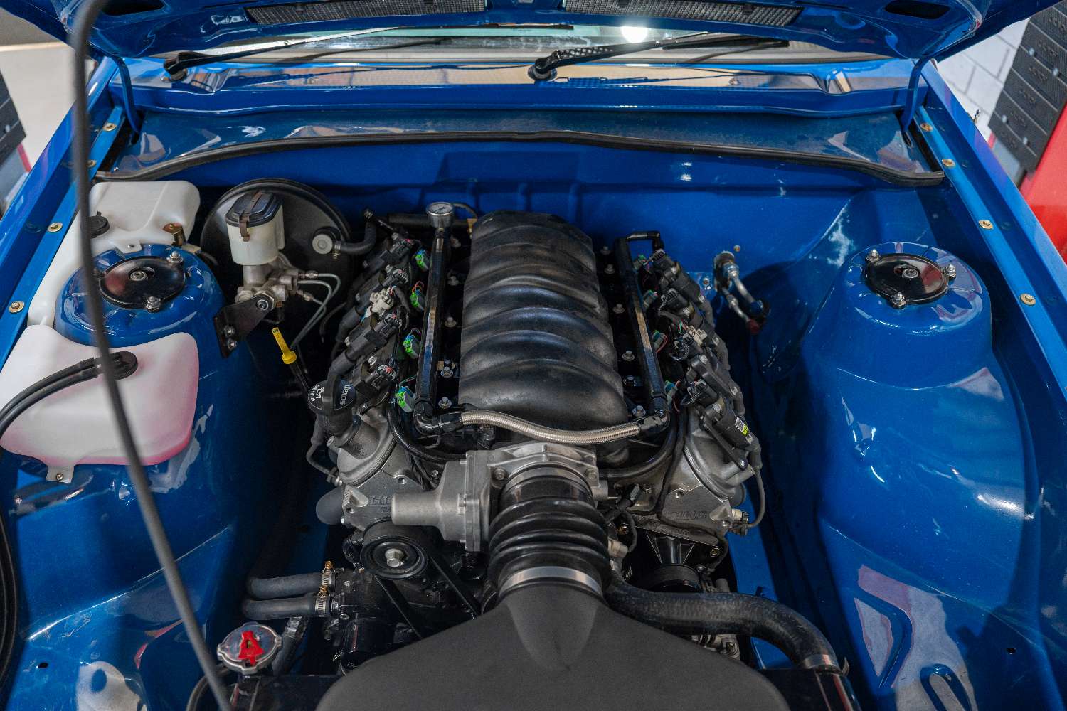 To enhance both function and appearance, we fitted a genuine HDT bonnet scoop, giving the VK a proper classic muscle look. Alongside this, we worked with our metal fabricator to fit a new airbox and air filter, improving airflow while keeping everything neat, secure, and purpose-built for the car.